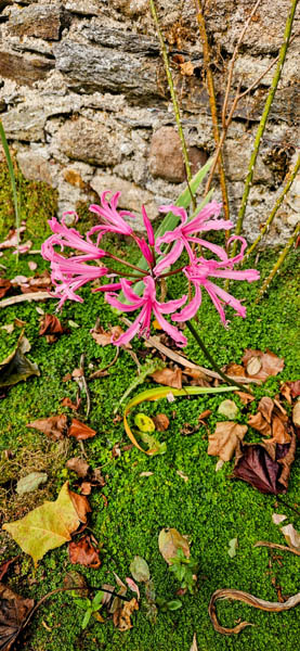 Moving up towards the Abbey, there were still vibrant pink roses with a scent that dazzled your senses. There was a new flower, again pink, which some said was a Naked Lily and I was caught by the simple beauty of the flower. We left the abbey and walked again slowly towards the temple. A Priestess invoked Persephone and all the time the sun shined so strongly down on our faces.