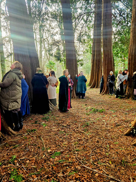 We all made our way over for much deserved cake and tea. Listening to the conversations about how magical people found today's ceremony was heart-warming. It is hard to portray the magic in words of our Winter Solstice Ceremony. One of the photographs I have included today is of everyone standing beside the trees in the Sacred Grove and you can see the light beaming from the sun around everyone.